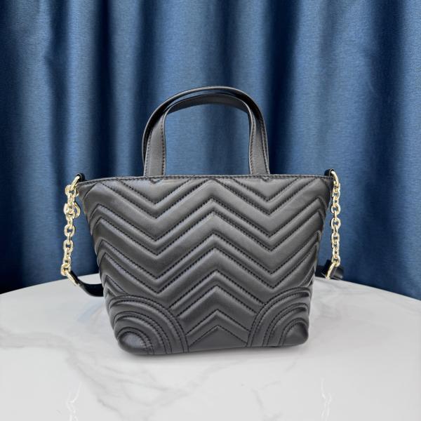 The Gucci Betty tote bag is a new addition to the 2025 Fall/Winter collection. Made of lambskin with V-shaped quilting, it boasts a soft and delicate feel, exuding a high-end quality. The bag features a simple design with the double F logo on the front and light gold hardware, radiating understated luxury. It can be carried by hand or worn crossbody, offering both practicality and style. Style number: 8017. Dimensions: 19*13*18cm, opening length 28cm.