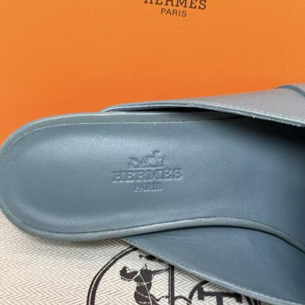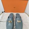 Shoe Shape and Materials: Featuring a square-toe mule design for easy slip-on and off; the style pictured has a grey-blue calfskin upper, soft and supple for comfortable wear; the metal buckle is gold-plated, enhancing its sophistication.