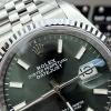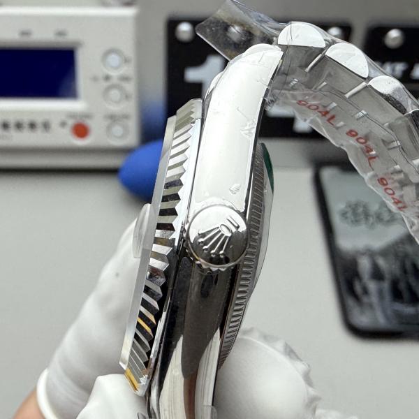 904L stainless steel case with polished finish and President bracelet, triangular-grooved bezel, dark green dial with baton hour markers, powered by Cal. 3235 automatic winding movement, 70-hour power reserve, water-resistant to 100 meters, date display with magnifier, Easylink adjustable link system.