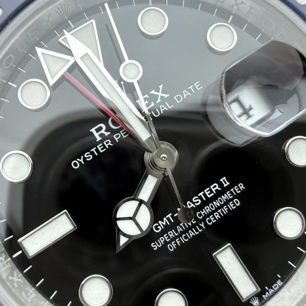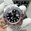 904L steel case with five-link bracelet, red and blue Cerachrom ceramic bidirectional rotating bezel with 24-hour scale, black dial with Chromalight® luminescent hour markers, powered by Calibre 3285 automatic movement with 70-hour power reserve, water-resistant to 100 meters, featuring dual time zone display.