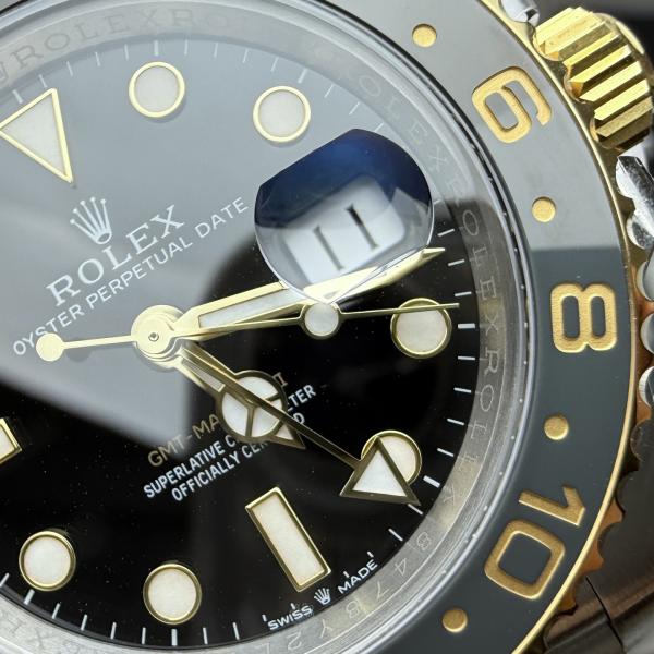 Case and bracelet crafted from 18K yellow gold and 904L steel, featuring a black Cerachrom ceramic bezel with a bidirectional rotating mechanism and 24-hour scale, accented by 18K yellow gold numerals. Black dial with Chromalight luminescent hour markers. Powered by the Calibre 3285 self-winding movement, offering a 70-hour power reserve. Water-resistant to 100 meters. Equipped with a dual time zone display function. Comes with a commemorative President bracelet.