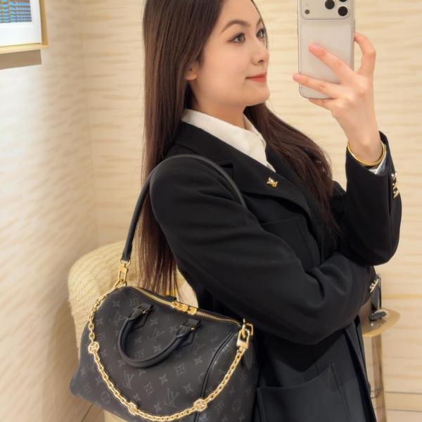 Design: Retains the Speedy's "pillow bag" silhouette, but with a softer body (nicknamed "soft and chubby"), paired with a gold chain and leather shoulder strap, allowing for hand-carrying or crossbody wear.