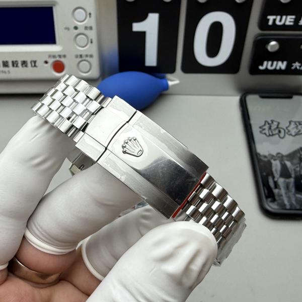 904L钢表壳与元首型表带,银色三角坑纹旋转外圈,银白色放射状表盘配18K白金Chromalight夜光时标,搭载Cal. 3235自动上链机芯,动力储存70小时,防水100米,日期显示功能,经典狗牙圈设计。